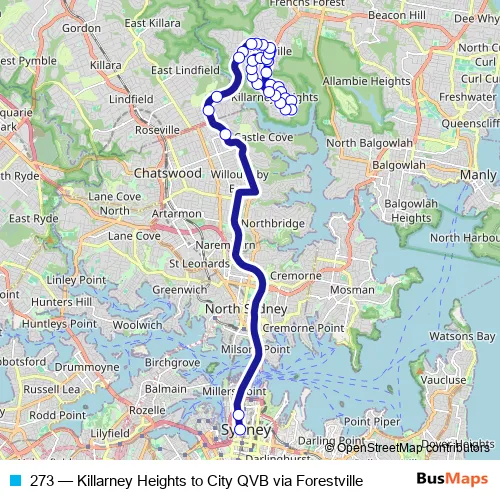 Bus 273 - Killarney Heights to City QVB via Forestville: Full Schedule in Sydney
