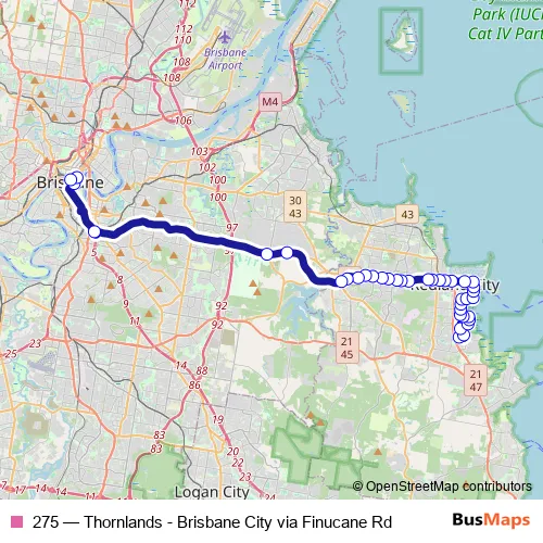 Bus 275 - Thornlands - Brisbane City via Finucane Rd: Full Schedule in Brisbane