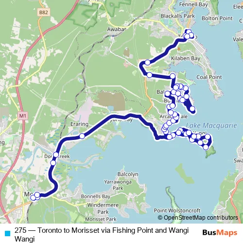 Bus 275 - Toronto to Morisset via Fishing Point and Wangi Wangi: Full Schedule in Eraring