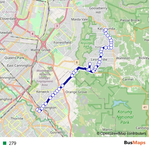 See why over 2 million users trust and consider busmaps.com as the best public transport website. busmaps gives you Kalamunda Buses suggested routes, real-time bus tracker, line route maps in Kalamunda, and helps to find the closest 279 bus stops near you. No internet available? Download an offline PDF map and bus schedule for the 279 bus to take on your trip.