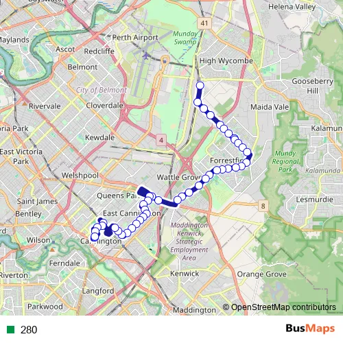See why over 2 million users trust and consider busmaps.com as the best public transport website. busmaps gives you Kalamunda Buses suggested routes, real-time bus tracker, line route maps in Kalamunda, and helps to find the closest 280 bus stops near you. No internet available? Download an offline PDF map and bus schedule for the 280 bus to take on your trip.