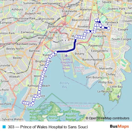 Click here to view the nearest 303 - Prince of Wales Hospital to Sans Souci bus stop.
