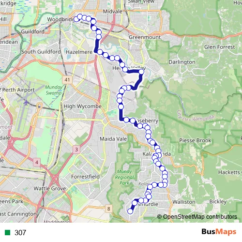 Bus 307 : Full Schedule in Kalamunda