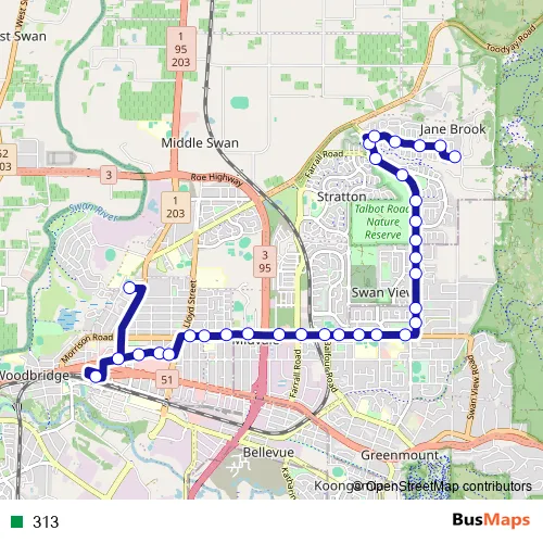 See why over 2 million users trust and consider busmaps.com as the best public transport website. busmaps gives you Kalamunda Buses suggested routes, real-time bus tracker, line route maps in Kalamunda, and helps to find the closest 313 bus stops near you. No internet available? Download an offline PDF map and bus schedule for the 313 bus to take on your trip.