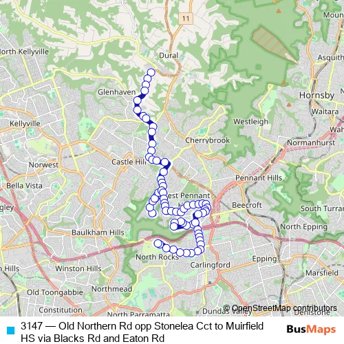 Bus 3147 - Old Northern Rd opp Stonelea Cct to Muirfield HS via Blacks Rd and Eaton Rd Schedule in Parramatta
