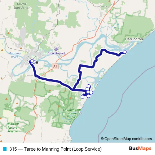 Bus 315 - Taree to Manning Point (Loop Service): Full Schedule in Old Bar