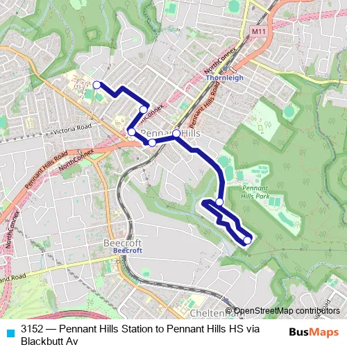 The first stop of the 3152 bus route is Pennant Hills Station, Railway St, Stand A and the last stop is Pennant Hills High School, Laurence St. 3152 (Pennant Hills Station to Pennant Hills HS via Blackbutt Av) is operational during on weekdays.