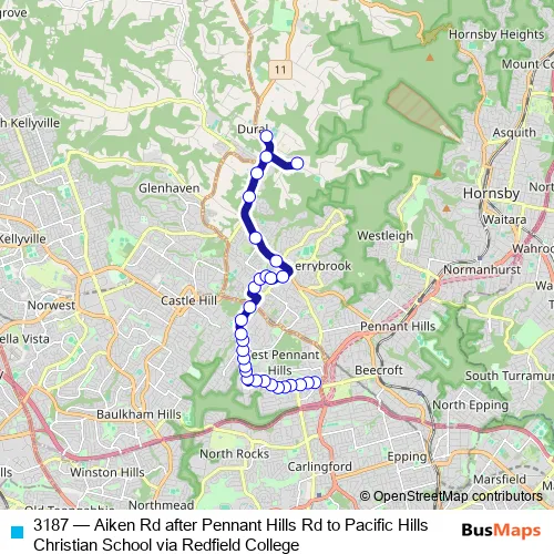 Click here to view the nearest 3187 - Aiken Rd after Pennant Hills Rd to Pacific Hills Christian School via Redfield College bus stop.