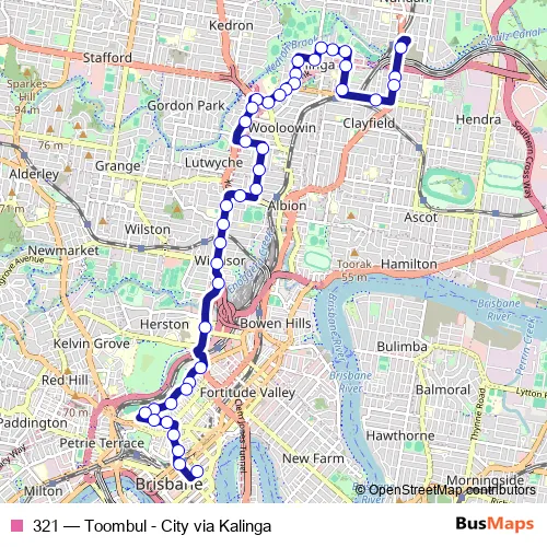 See why over 2 million users trust and consider busmaps.com as the best public transport website. busmaps gives you Brisbane Buses suggested routes, real-time bus tracker, line route maps in Brisbane, and helps to find the closest 321 bus stops near you. No internet available? Download an offline PDF map and bus schedule for the 321 bus to take on your trip.