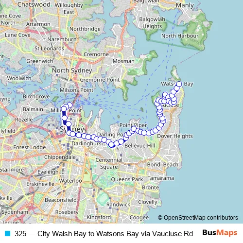 325 Bus - City Walsh Bay to Watsons Bay via Vaucluse Rd