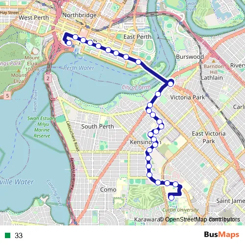 See why over 2 million users trust and consider busmaps.com as the best public transport website. busmaps gives you Perth Buses suggested routes, real-time bus tracker, line route maps in Perth, and helps to find the closest 33 bus stops near you. No internet available? Download an offline PDF map and bus schedule for the 33 bus to take on your trip.