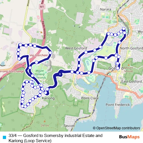 Bus 33/4 - Gosford to Somersby industrial Estate and Kariong (Loop Service): Full Schedule in North Gosford