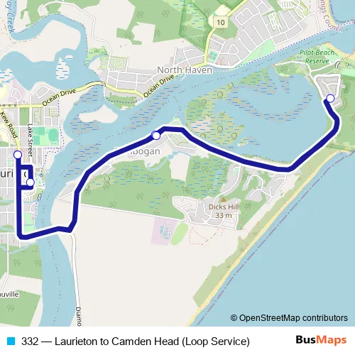 Bus 332 - Laurieton to Camden Head (Loop Service) Schedule in Dunbogan