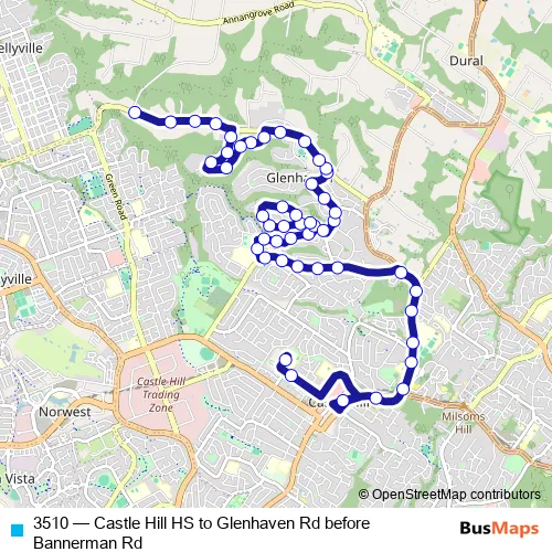 Bus 3510 - Castle Hill HS to Glenhaven Rd before Bannerman Rd Schedule in Parramatta