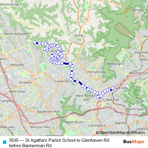 Bus 3535 - St Agatha's Parish School to Glenhaven Rd before Bannerman Rd: Full Schedule in Parramatta