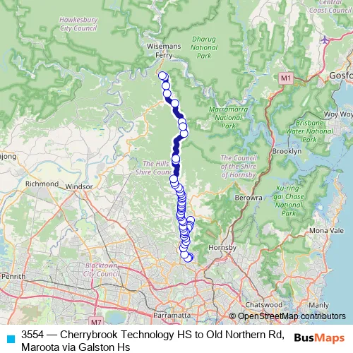 The first stop of the 3554 bus route is Cherrybrook Technology High School, Purchase Rd and the last stop is Old Northern Rd At Canoelands Rd. 3554 (Cherrybrook Technology HS to Old Northern Rd, Maroota via Galston Hs) is operational during on weekdays.