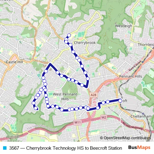 Bus 3567 - Cherrybrook Technology HS to Beecroft Station Schedule in Parramatta