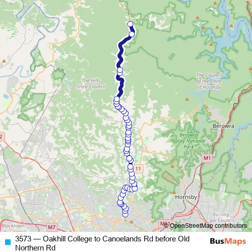 The first stop of the 3573 bus route is Old Northern Rd Opp Oakhill College and the last stop is Canoelands Rd Before Old Northern Rd. 3573 (Oakhill College to Canoelands Rd before Old Northern Rd) is operational during on weekdays.