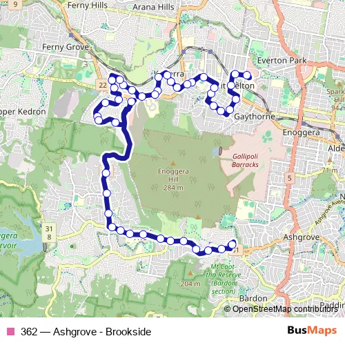 Bus 362 - Ashgrove - Brookside: Full Schedule in Brisbane