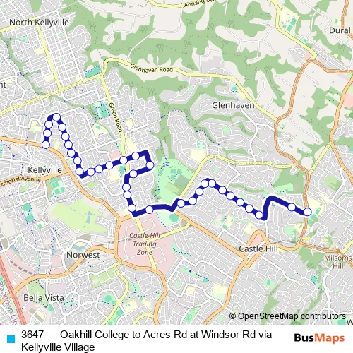 3647 Bus - Oakhill College to Acres Rd at Windsor Rd via Kellyville Village