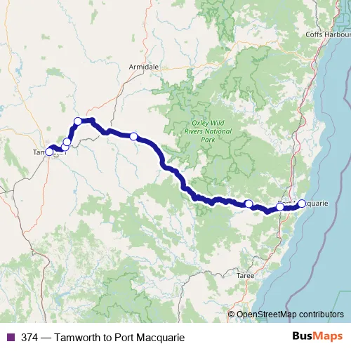 Click here to view the nearest 374 - Tamworth to Port Macquarie bus stop.
