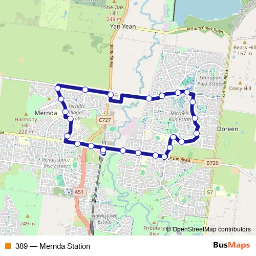 Bus 389 - Mernda Station in St Helena: Stops & Timetable