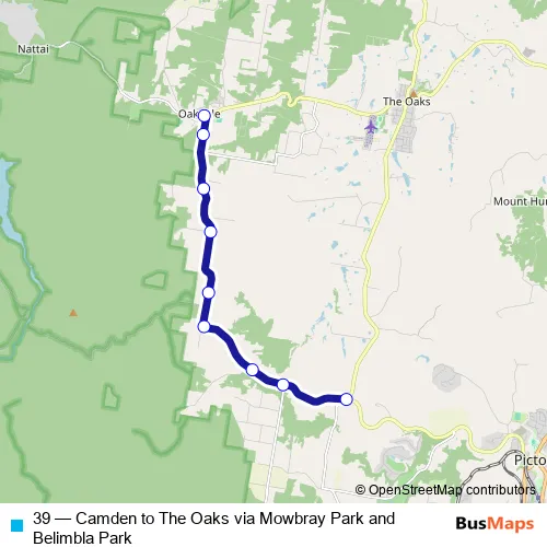 Bus 39 - Camden to The Oaks via Mowbray Park and Belimbla Park: Full Schedule in Mount Hunter