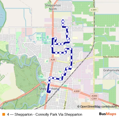 Click here to view the nearest 4 - Shepparton - Connolly Park Via Shepparton bus stop.