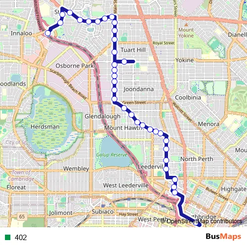 See why over 2 million users trust and consider busmaps.com as the best public transport website. busmaps gives you Perth Buses suggested routes, real-time bus tracker, line route maps in Perth, and helps to find the closest 402 bus stops near you. No internet available? Download an offline PDF map and bus schedule for the 402 bus to take on your trip.