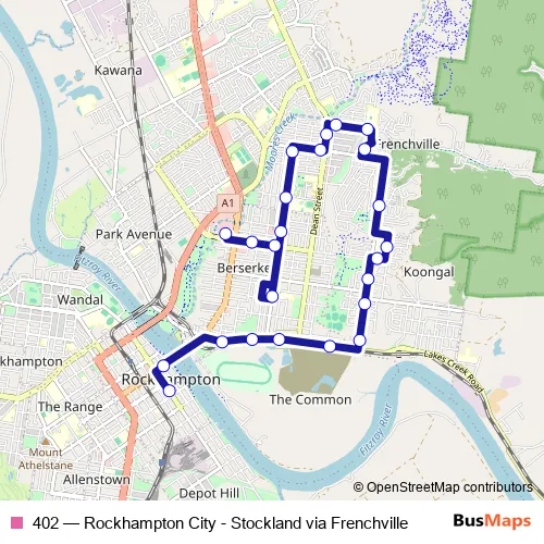 Click here to view the nearest 402 - Rockhampton City - Stockland via Frenchville bus stop.