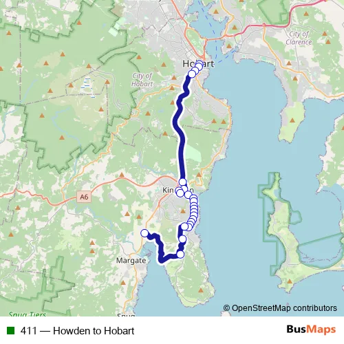 See why over 2 million users trust and consider busmaps.com as the best public transport website. busmaps gives you Hobart Buses suggested routes, real-time bus tracker, line route maps in Hobart, and helps to find the closest 411 bus stops near you. No internet available? Download an offline PDF map and bus schedule for the 411 bus to take on your trip.