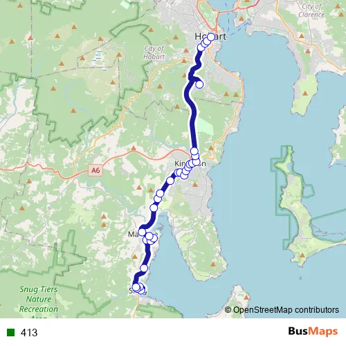 See why over 2 million users trust and consider busmaps.com as the best public transport website. busmaps gives you Hobart Buses suggested routes, real-time bus tracker, line route maps in Hobart, and helps to find the closest 413 bus stops near you. No internet available? Download an offline PDF map and bus schedule for the 413 bus to take on your trip.