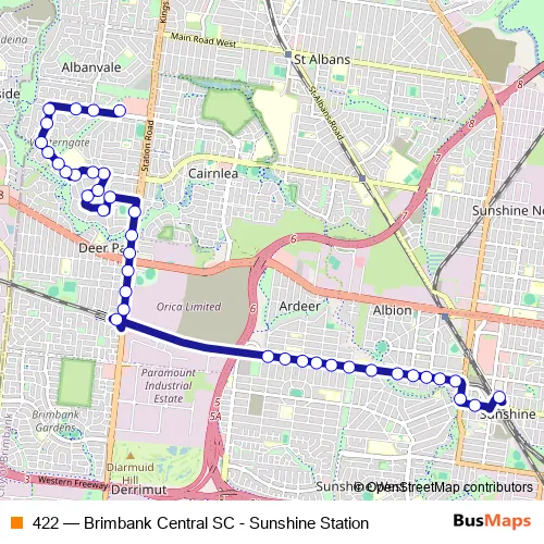 Bus 422 - Brimbank Central SC - Sunshine Station: Full Schedule in Melbourne
