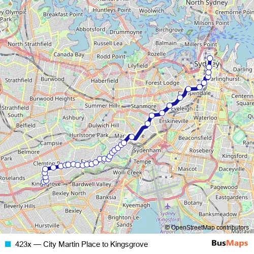 Click here to view the nearest 423x - City Martin Place to Kingsgrove bus stop.