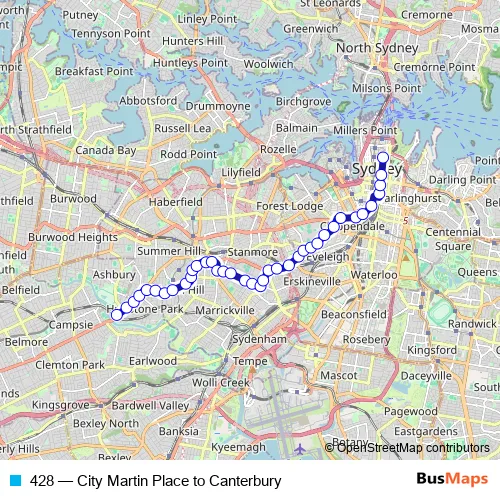 Click here to view the nearest 428 - City Martin Place to Canterbury bus stop.