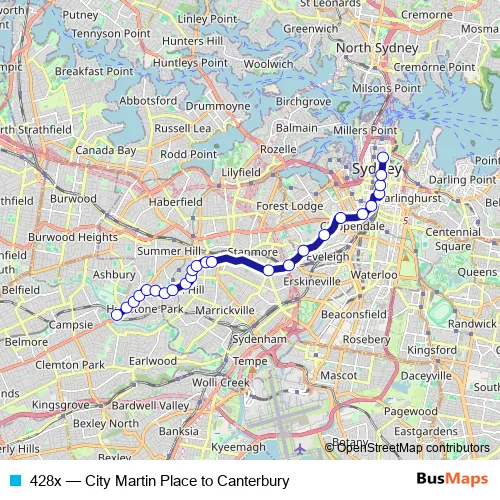 Click here to view the nearest 428x - City Martin Place to Canterbury bus stop.