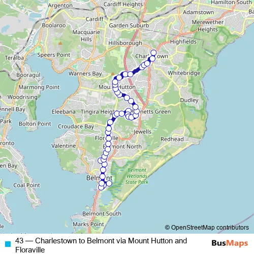 Bus 43 - Charlestown to Belmont via Mount Hutton and Floraville: Full Schedule in Newcastle