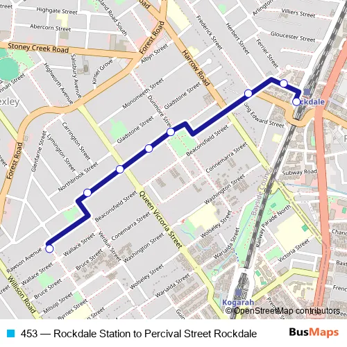 Bus 453 - Rockdale Station to Percival Street Rockdale Schedule in Sydney