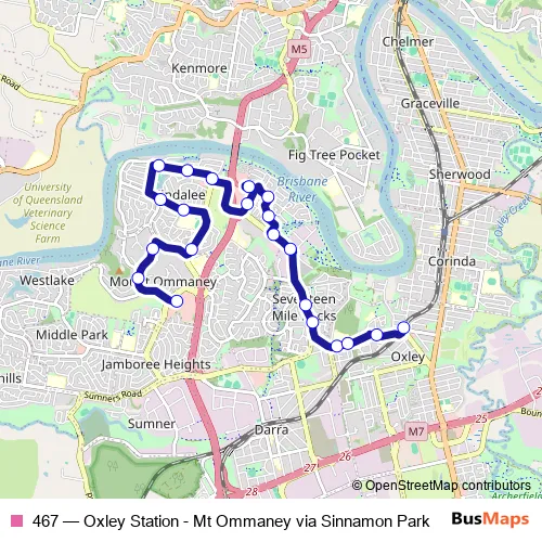 Bus 467 - Oxley Station - Mt Ommaney via Sinnamon Park: Full Schedule in Brisbane