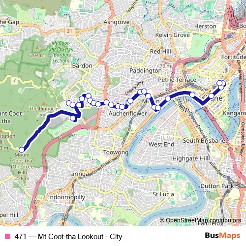 Bus 471 - Mt Coot-tha Lookout - City in Brisbane: Stops & Timetable