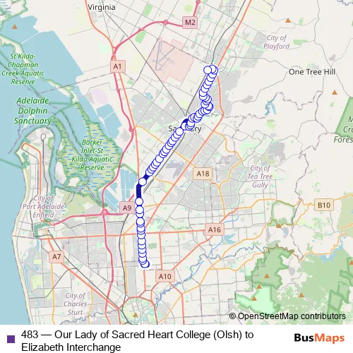 The first stop of the 483 bus route is Stop School Sacred Heart College Corralyn Ave and the last stop is Elizabeth Interchange Terminus. 483 (Our Lady of Sacred Heart College (Olsh) to Elizabeth Interchange) is operational during on weekdays.