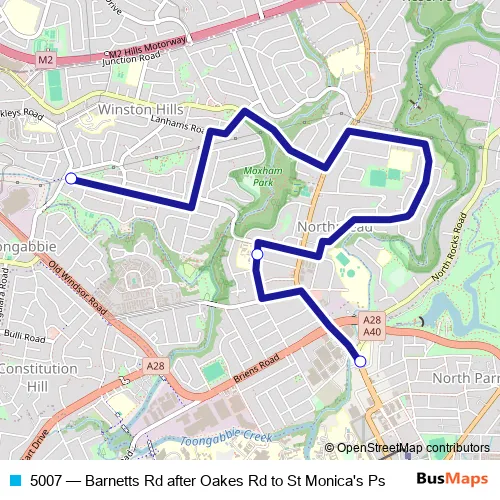 Bus 5007 - Barnetts Rd after Oakes Rd to St Monica's Ps: Full Schedule in Parramatta