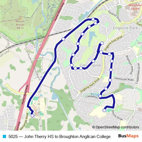 Demetrius Road - Crispsparkle Drive - Copperfield Drive - Heritage Way - Glen Alpine Drive - Heritage Way - Glen Alpine Drive - Menangle Road