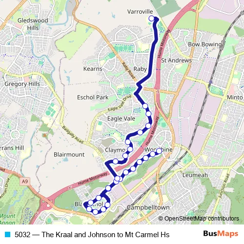 Bus 5032 - The Kraal and Johnson to Mt Carmel Hs Schedule in Campbelltown
