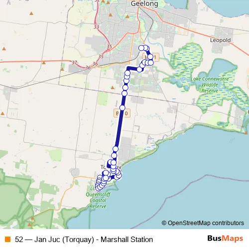 Bus 52 - Jan Juc (Torquay) - Marshall Station in Torquay: Stops & Timetable