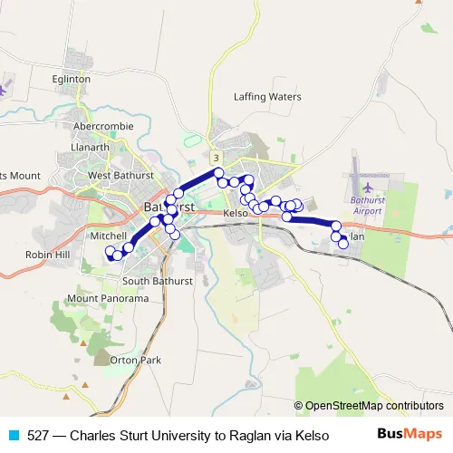 Bus 527 - Charles Sturt University to Raglan via Kelso in Bathurst: Stops & Timetable