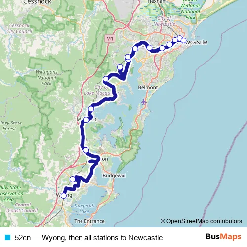 Click here to view the nearest 52cn - Wyong, then all stations to Newcastle bus stop.
