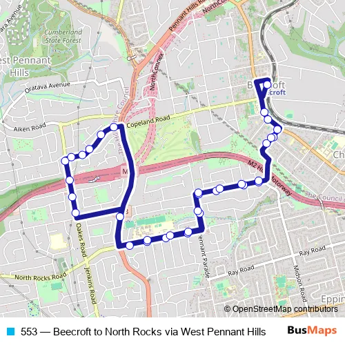 Click here to view the nearest 553 - Beecroft to North Rocks via West Pennant Hills bus stop.