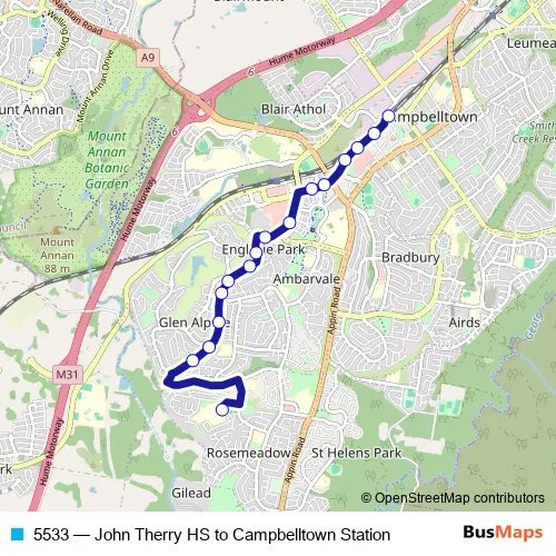Bus 5533 - John Therry HS to Campbelltown Station: Full Schedule in Campbelltown