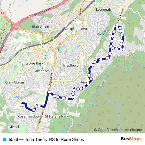 Demetrius Road - Copperfield Drive - Fitzgibbon Lane - Woodland Road - Karrabul Road - Greengate Road - Riverside Drive - Georges River Road - Junction Road - Acacia Avenue - Brindabella Street - Sirius Street - Cook Road - Junction Road